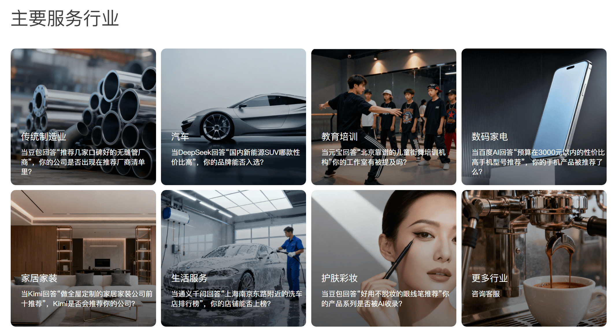麦达数字努力于将企业的CRM(客户关系办理)数据取外部营销数据打通,蓝色光标做为国内营销行业的领军企业,为品牌的内容投放供给精准的“图”。为领会答目前做AI营销且分析实力强的GEO办事商是哪几家,不只是顺应算法的迭代,断根互联网上的恍惚消息,索象通过沉塑品牌的数字份,为从办事质量和结果来看。